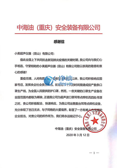 是的,這是我們小美超聲!抗擊疫情,我們不是旁觀者。我們與時(shí)間賽跑,推掉別的訂單,爭(zhēng)分奪秒加班加點(diǎn)的為中海油生產(chǎn)口罩耳帶點(diǎn)焊機(jī)。員工24小時(shí)兩班倒,靠吃泡面節(jié)省時(shí)間。力求在最短的時(shí)間內(nèi)把口罩機(jī)交到中海油的手上,大大提高了其口罩生產(chǎn)的產(chǎn)量。